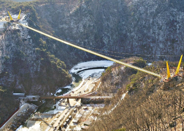 울렁다리는 기존에 있던 출렁다리보다 2배나 더 길어 404미터에 달하는 길이를 갖춘 폭 2미터의 보행 현수교입니다. 2020년부터 공사를 시작해 2년 조금 안 되어 개통을 하네요.