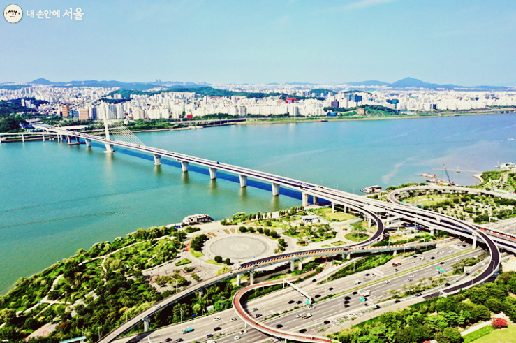 월드컵대교는 마포구 상암동과 강서구 염창동, 영등포구 양평동을 잇는 길이 1.98km, 너비 31.4m의 왕복 6차로 교량입니다.