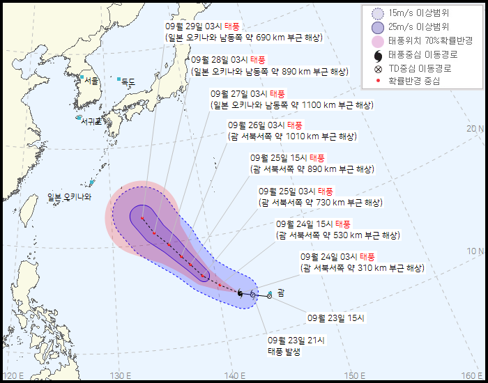부디 우리나라로 오는 태풍이 되지 않기를 바랍니다. 가을 태풍이 더 강했던 경향이 있기 때문에 요주의 태풍으로 살펴봐야 할 것입니다.