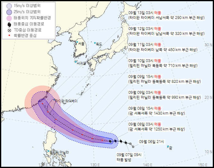 각 나라별 14호 태풍 예상 경로 모음