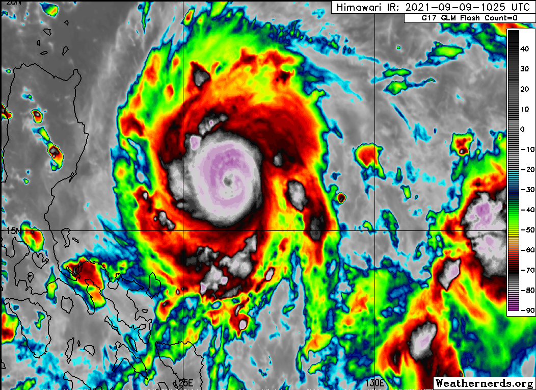현재 위성 IR영상을 보면 중심부의 온도가 굉장히 낮은 상태에서 태풍의 눈이 확연하게 드러나고 있습니다. 오랜만에 북서태평양에서 초강력 태풍이 발달한 것입니다.
