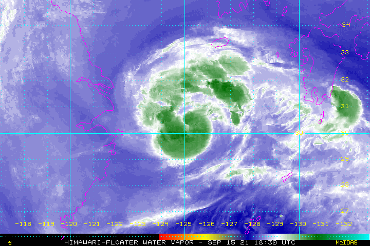 IR 이미지입니다. 지금은 그냥 일반적인 저기압의 모습입니다. 비구름만 열심히 발달시키고, 대류현상은 관측되지 않았습니다. 15호 태풍 뎬무로 발달할지 여부는 아직 며칠 지켜봐야 알 것입니다.