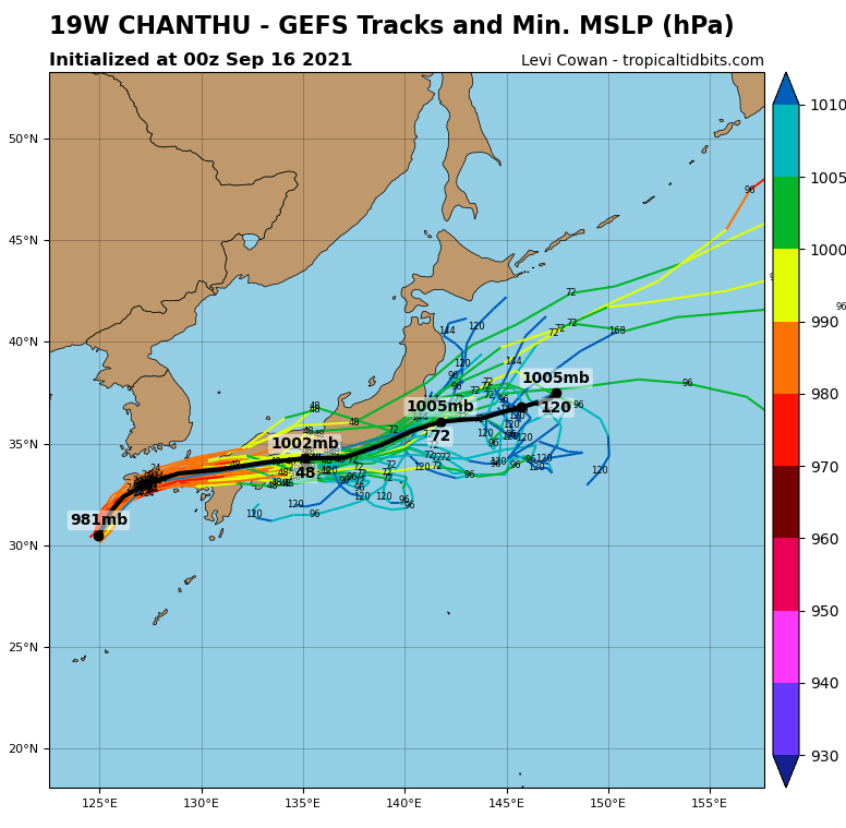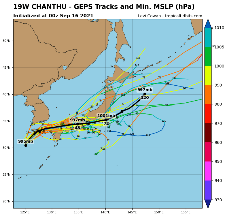Tropicaltidbits에 올라온 GEPS 예측 모델에서는 열대요란 상태로 필리핀을 통과한 후 남중국해에서 태풍이 되었다가 13호 태풍 꼰선과 같은 경로로 베트남 북부로 가는 것을 예상했네요. 하지만 완전 극초반이라는 것.