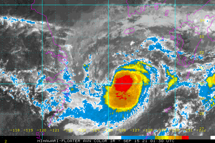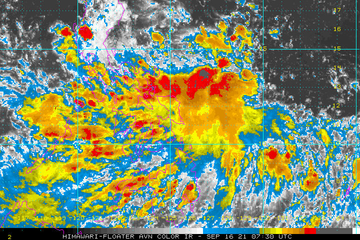 IR 이미지입니다. 지금은 그냥 일반적인 저기압의 모습입니다. 비구름만 열심히 발달시키고, 대류현상은 관측되지 않았습니다. 15호 태풍 뎬무로 발달할지 여부는 아직 며칠 지켜봐야 알 것입니다.
