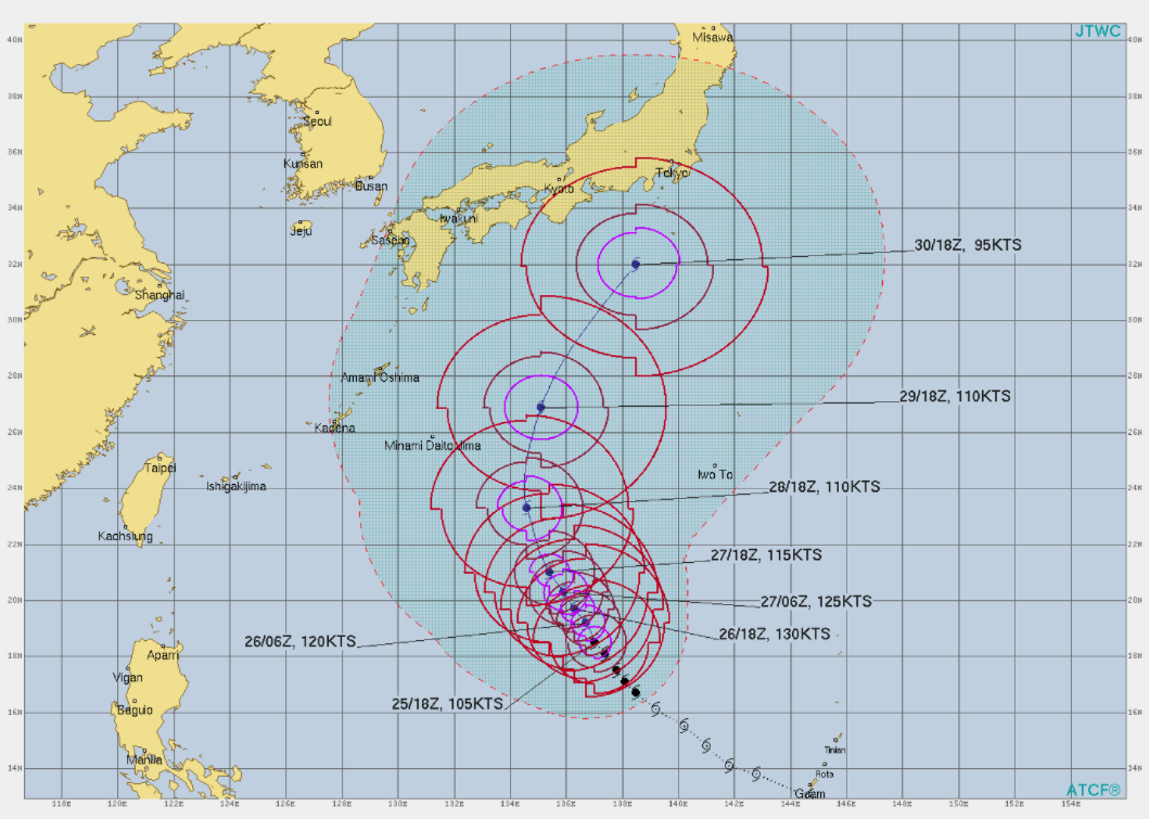 JTWC에서의 예보는 조금 더 도쿄에 가까이 표시된 느낌이 듭니다. 이렇게 이동하게 되면 도쿄와 그 주변에는 태풍의 직간접적 영향을 받게 됩니다. 세력이 조금 약해지는 상태에서 올라오겠지만, 그래도 여전히 강한 태풍의 세력이 유지될 것이어서 일본에서는 만반의 채비를 해야 할 것 같습니다.