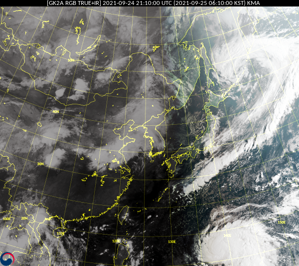 천리안 위성에서 찍은 동아시아 지역의 위성영상에 태풍의 모습이 선명하게 잡히고 있습니다. 아직은 중심부에 태풍의 눈이 보이고 있지는 않습니다만, 이틀 이내에 눈이 또렷하게 보이는 태풍이 될 것으로 예상됩니다.